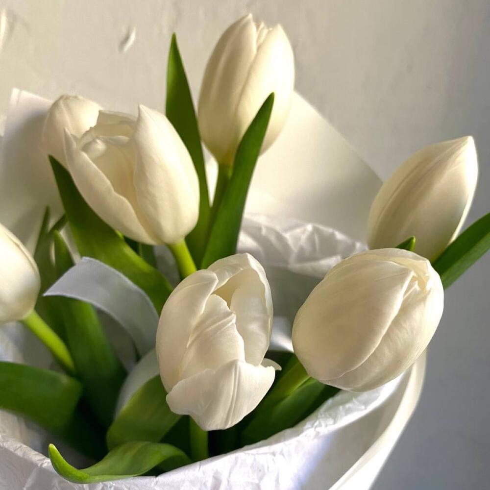 Букет из хрустящих тюльпанов☺️ идеальные белые бутоны с яркой зеленью в нежной упаковке! Карточка к букету в подарок Рекомендации по уходу за букетом-необходимо каждый день менять воду в вазе-обновлять срез цветов под углом 45 градусов, достаточно убрать 1 см длины-избегайте попадания прямых солнечных лучей на цветы-не ставьте вазу рядом с фруктами(они выделяют этилен и плохо влияют на стойкость цветов) Порадуйте своих родных и близких хрустящими свежими тюльпанами